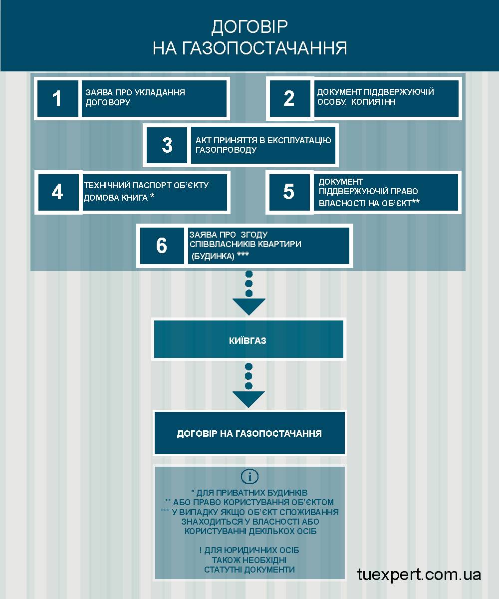 Договір про надання послуг з газопостачання, як правило, укладається з газопостачальною організацією, в нашому випадку це ПАТ «Київгаз».